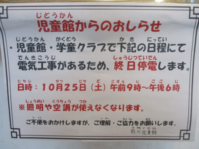 熊川児童館からのお知らせ